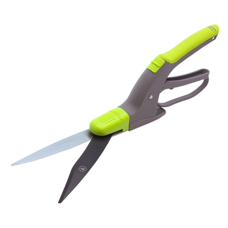 Ножиці газонні, поворотні, 360 градусів. Леза виготовлені з високоякісної японської сталі SK5. Можуть застосовуватись як для підстригання трави, так і для живої огорожі та формування декоративних рослин. Можливість повертати ріжучий блок дозволяє легко працювати у важкодоступних зонах.