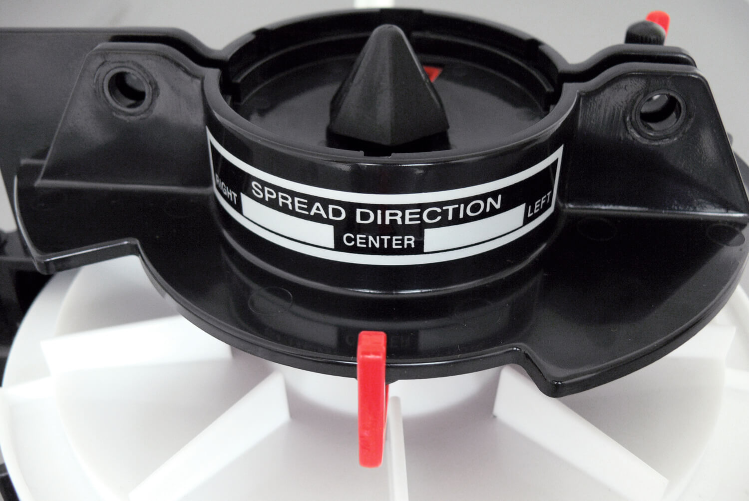 ✔ За допомогою кривошипної ручки обертається розподільна тарілка, що гарантує точний поперечний розподіл гранульованого матеріалу по всій поверхності ділянки.