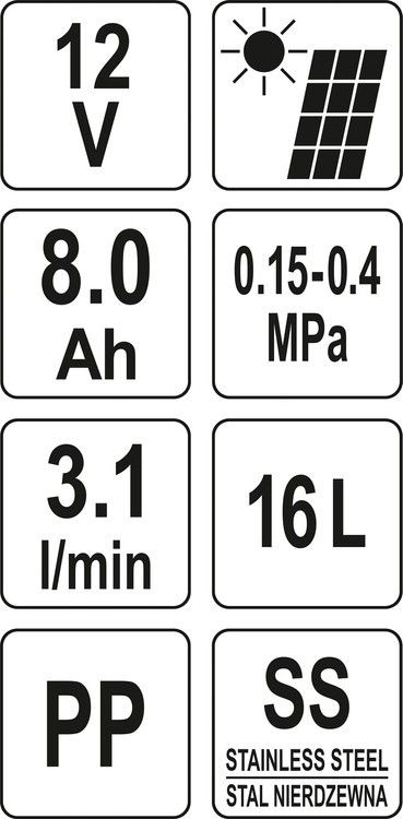 YATO Оприскувач акумуляторний ранцевий, 12 В, 8 Агод, 16л, продуктивность- 3.1 л/хв(сонячна бат)