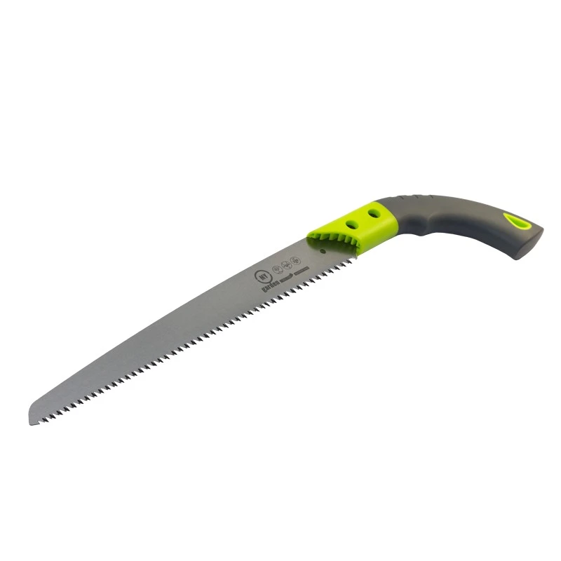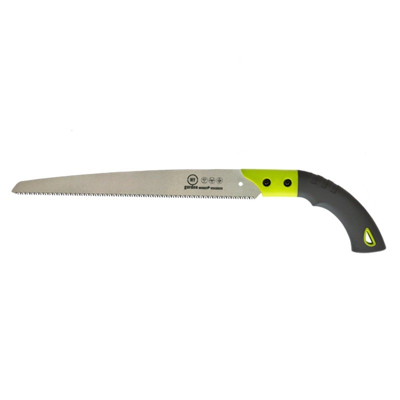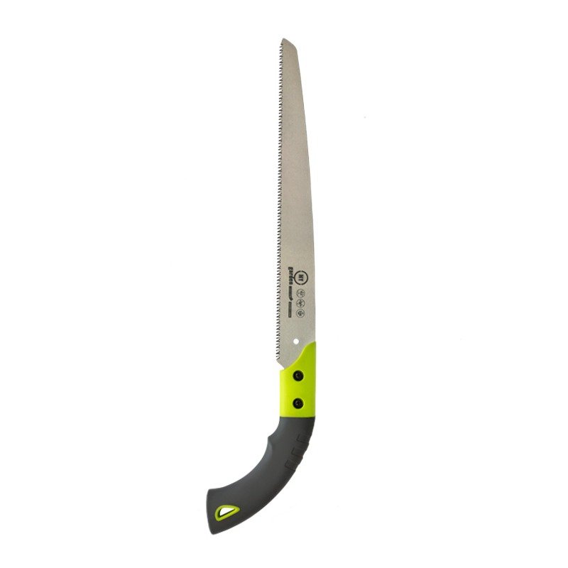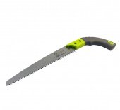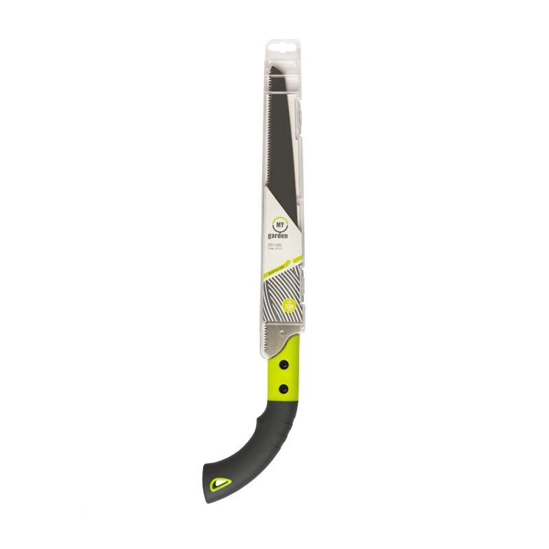Пилка садова з прямим лезом довжиною 330 мм, яке виготовлене з високоякісної японської сталі SK5. Загартований зуб з трьохгранною заточкою зворотньої направленості. Найкращі якості відкриваються під час роботи з живими гілками від 30мм. Поверхня зрізу гладенька, а краї рівні, що сприяє надійному зарощуванню новою корою. Ергономічна двокомпонентна ручка, надійно зафіксована двома гвинтами. Має спеціальний пластиковий чохол для зберігання.
