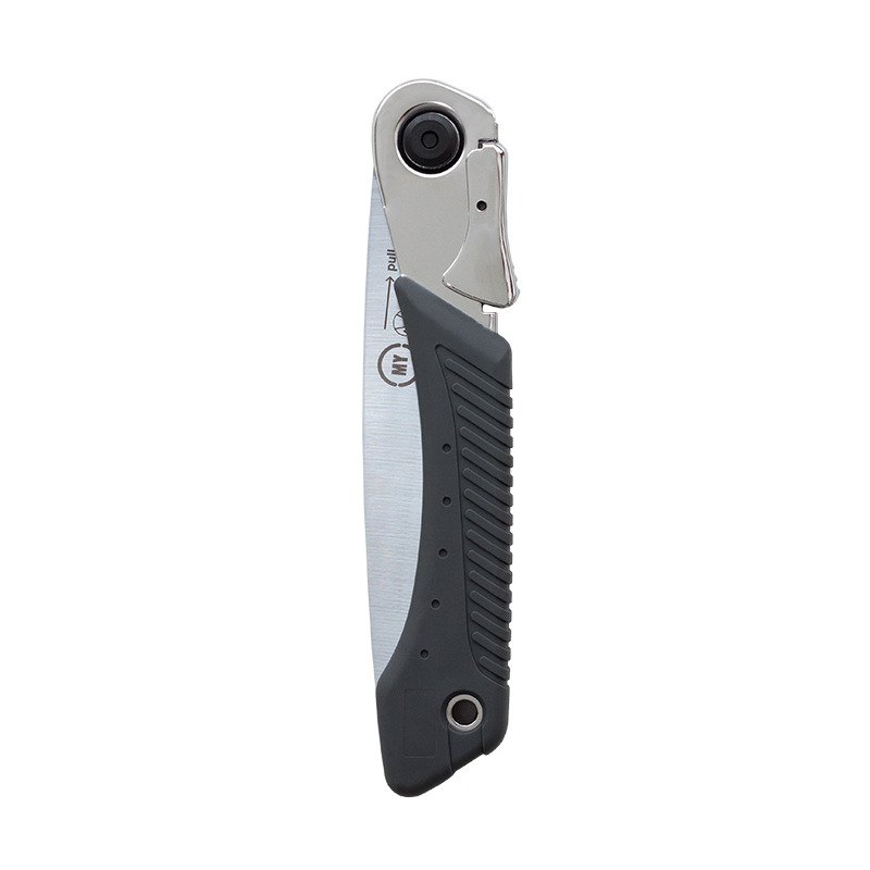 Компактна в складеному стані, пилка легко вміщується в пластиковий чохол, що кріпиться до паска для зручності та безпеки.