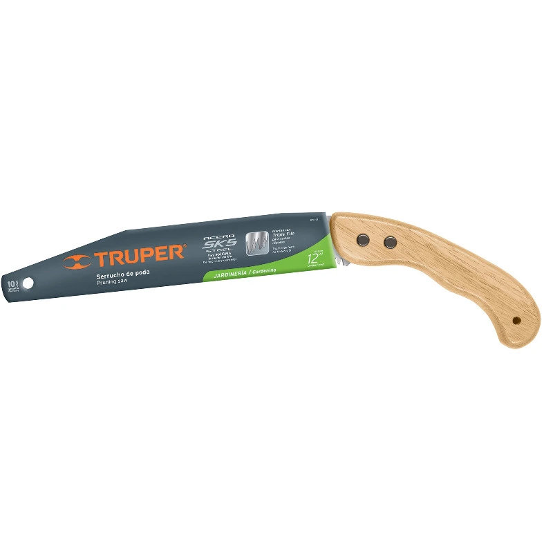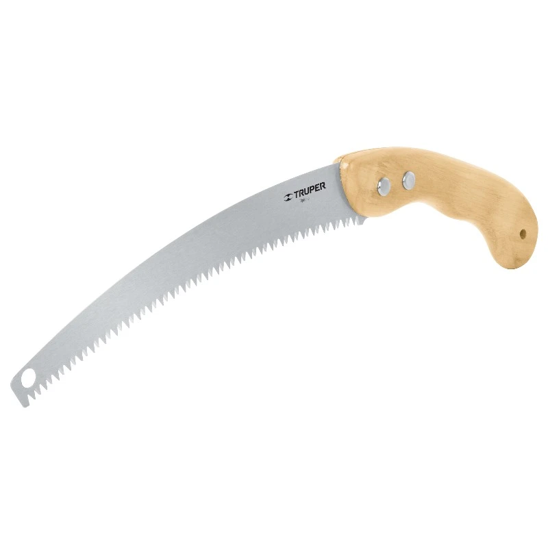 Пилка садова з вигнутим лезом довжиною 300 мм, яке виготовлене з високоякісної японської сталі SK5. Має зуб з трьохгранною заточкою зворотньої направленості. Найкращі якості відкриваються під час роботи з живими гілками від 30мм. Завдяки вигнутому профілю леза значно зменшується зусилля, яке треба докладати під час роботи. Поверхня зрізу гладенька, а краї рівні, що сприяє надійному зарощуванню новою корою. Ергономічна дерев'яна ручка, надійно зафіксована двома гвинтами.