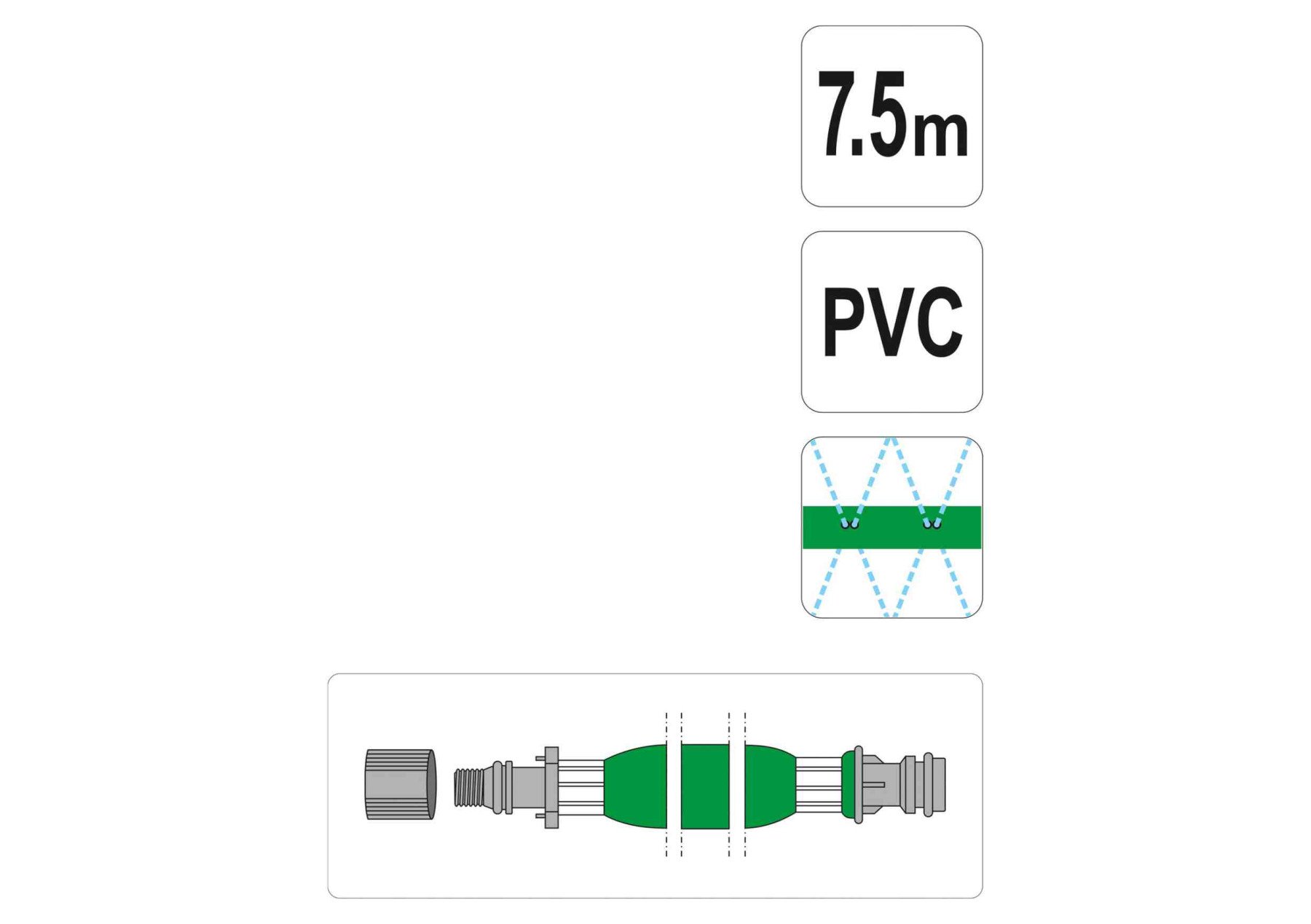FLO Шланг плоский з отворами для зрошування : l=7.5м, Ø=16 мм, ПВХ, з швидкосполуч. наконечниками | 89360