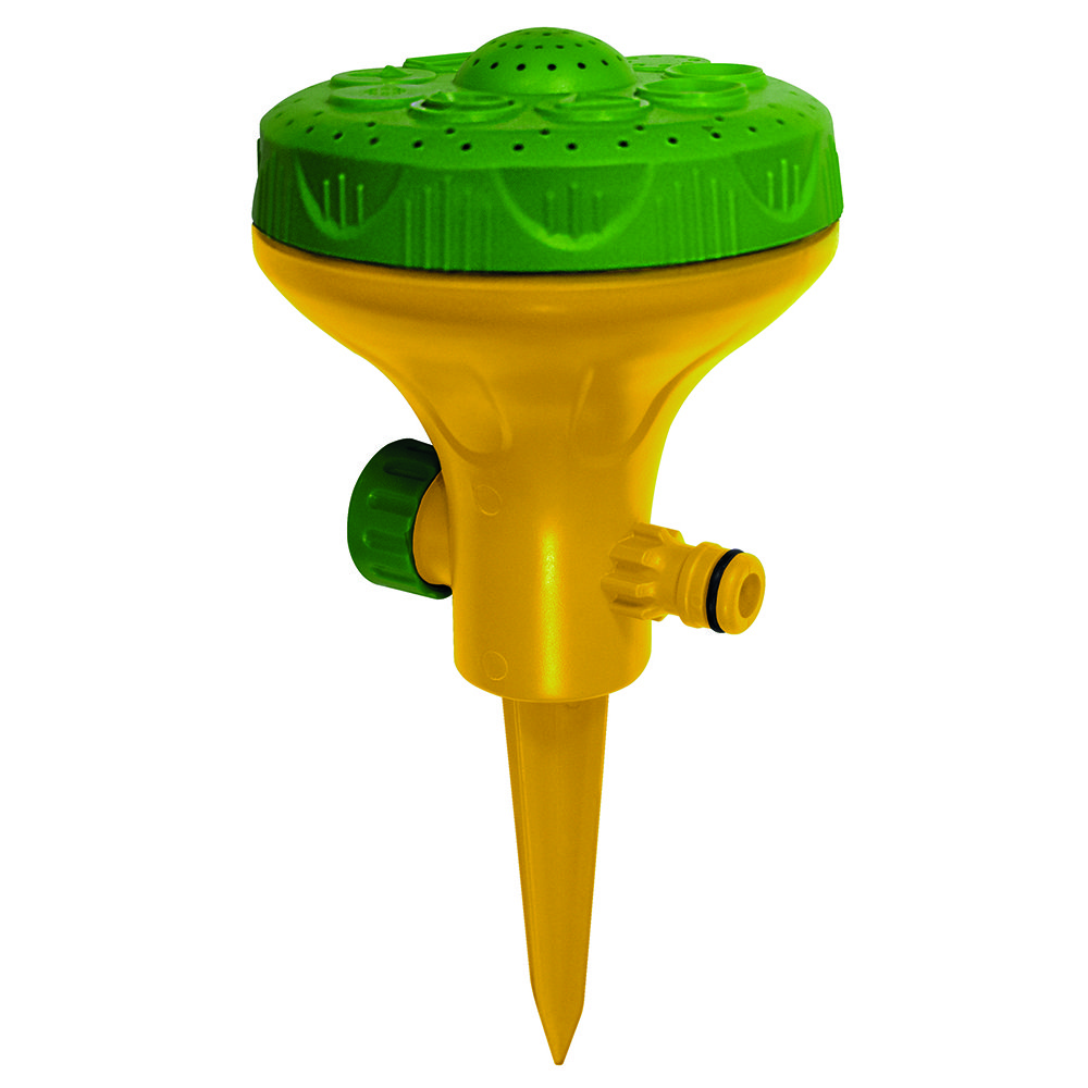 Простий в користуванні розпилювач на стрижні використовується для поливу кущів, зрошення газонів, поливу городу, міцно тримаєтся в землі, не псує газон. Обробляє сектор ділянки захопленням 360°. Підключається до шлангу через конектор. Рекомендований робочий тиск в системі від 2 до 4 атмосфер. Має 9 режимів поливу: напівплоский, малий душ, сектор, трикутник, квадрат, круг, бритва, півколо, прямокутник. Регулюється поворотом лійки. Дозволяє вносити водорозчинні добрива. Висока ефектівність і рівномірність поливу, оптимальний рівень вологості грунту і повітря. Інструкція по монтажу: підключіть садовий шланг через конектор до джерела водопостачання, за допомогою конектора підключити шланг до розпилювача, встановити розпилювач на місце поливу, подати воду в систему.