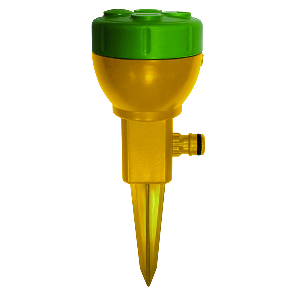 Простий в користуванні розпилювач на стрижні використовується для поливу кущів, зрошення газонів, поливу городу, міцно тримаєтся в землі, не псує газон. Обробляє сектор ділянки захопленням 360°. Підключається до шлангу через конектор. Рекомендований робочий тиск в системі від 2 до 4 атмосфер. Має 4 режима поливу: півколо, квадрат, прямокутник, душ. Регулюється поворотом лійки. Дозволяє вносити водорозчинні добрива. Висока ефектівність і рівномірність поливу, оптимальний рівень вологості грунту і повітря. Інструкція по монтажу: підключіть садовий шланг через конектор до джерела водопостачання, за допомогою конектора підключити шланг до розпилювача, встановити розпилювач на місце поливу, подати воду в систему.