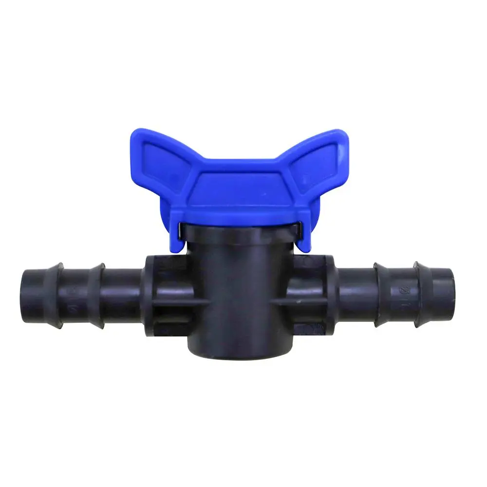 Кран прохідний вставляється між двома крапельними трубками. Дозволяє перекривати подачу води при відсутності необхідності поливу окремих ліній.