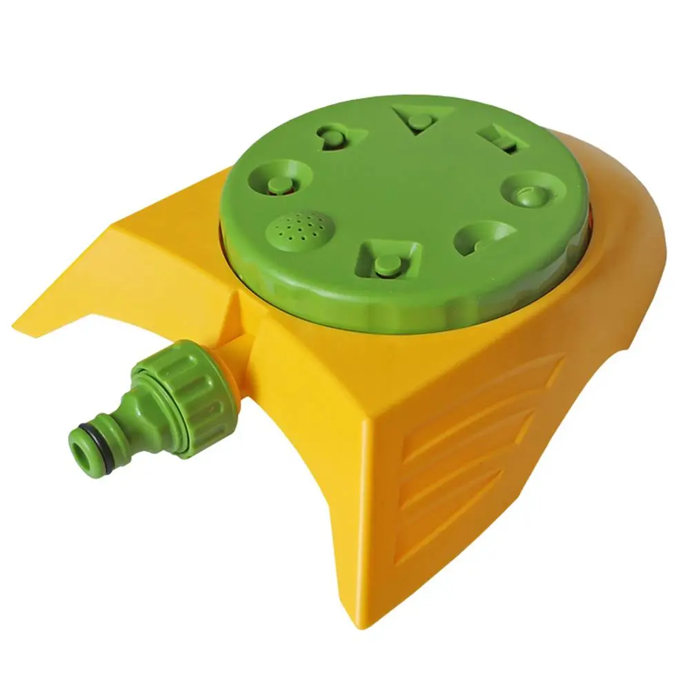 Розпилювач являє собою стійку круглу платформу. Є можливість вибору одного з восьми типів подання води: коло, півколо, 1/4 кола, трикутний, прямокутний, квадрат, плоский, душ. Виготовлений з якісного пластика ABS+PP. Призначений для зрошення поверхонь невеликої площі, присадибних ділянок, городів, клумб, газонів. Полив через розпилювач дає змогу підтримувати оптимальні показники водо- і повітропроникності ґрунту, створюючи сприятливий мікроклімат для розвитку коренів. Дуже простий у використанні, не вимагає складання та налаштування, гарантує рівномірне та м'яке зрошення без калюж. Округла форма дає змогу легко пересувати його газоном. Стане добрим доповненням для садового господарства.