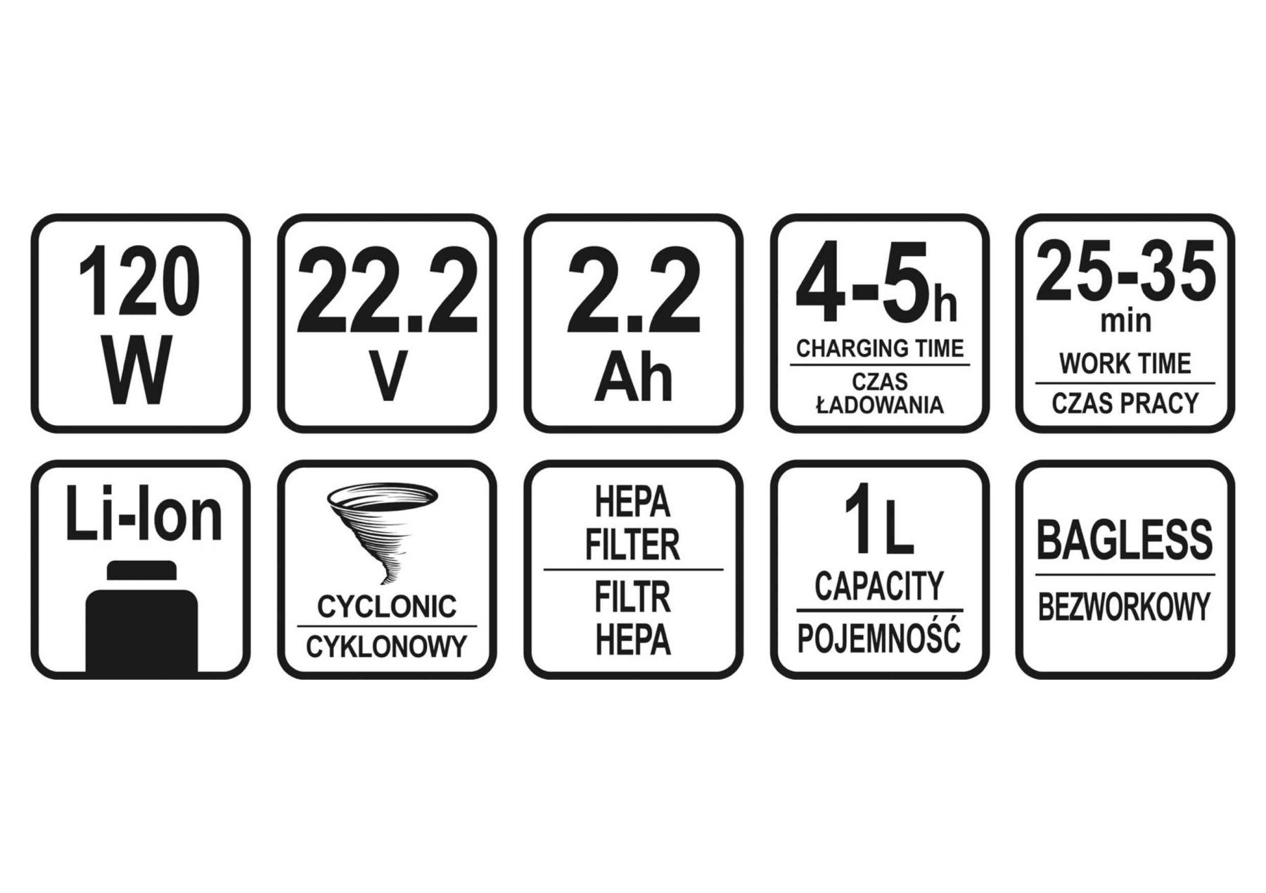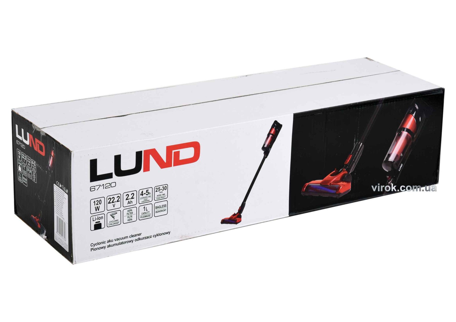 LUND Порохотяг вертикальний акумул. : Li-Ion 22.2 В, 2.2 АГод, 120 Вт, збірник- 1 л, | 67120