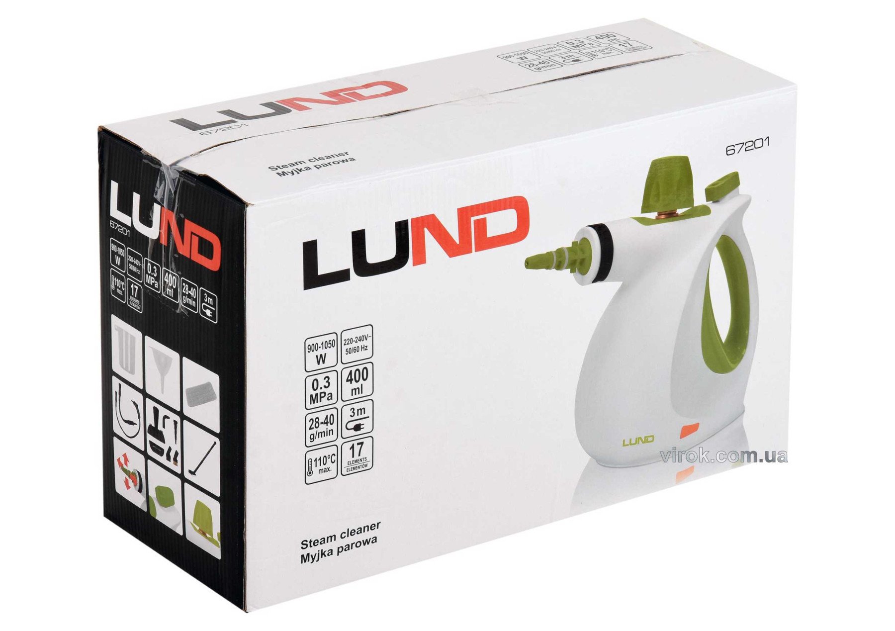 LUND Пароочисник мережевий : 1 кВт, ємність- 400 мл, макс. t= 110 °С, 17 насадок | 67201