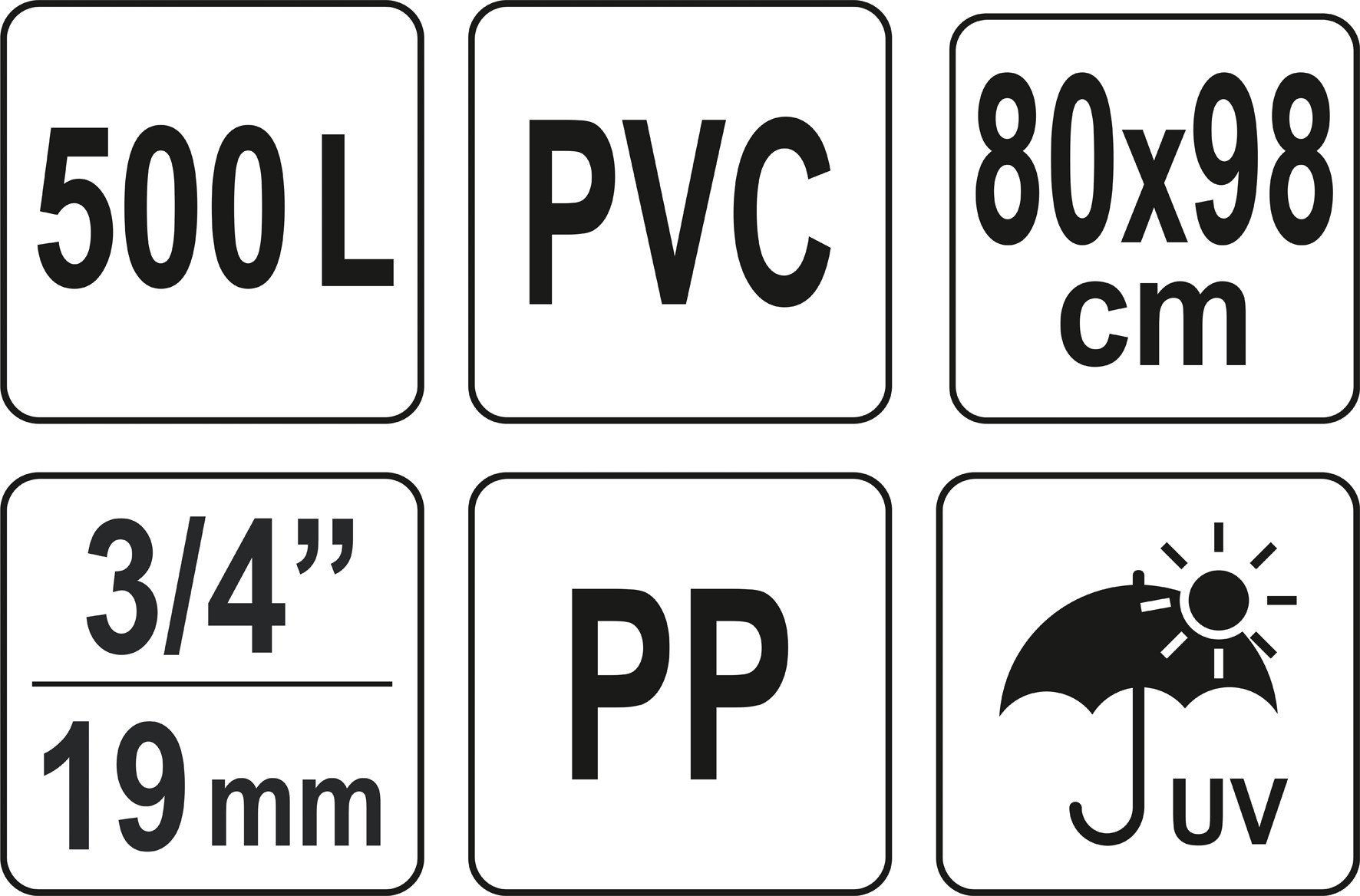 FLO Бак збірний дощової води з ПВХ : 500 л, Ø=3/4", Ø80 x 98 см, стійкий до УФ променів | 89704