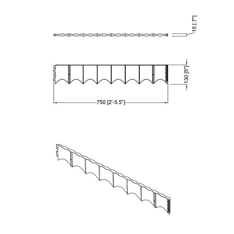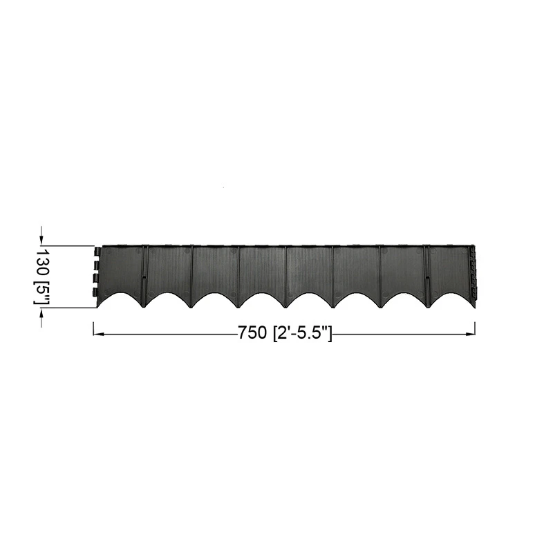 - Один бордюр 75 см довжиною з кріпленнями по краях, що дозволяє з'єднувати елементи між собою поперек та уздовж
