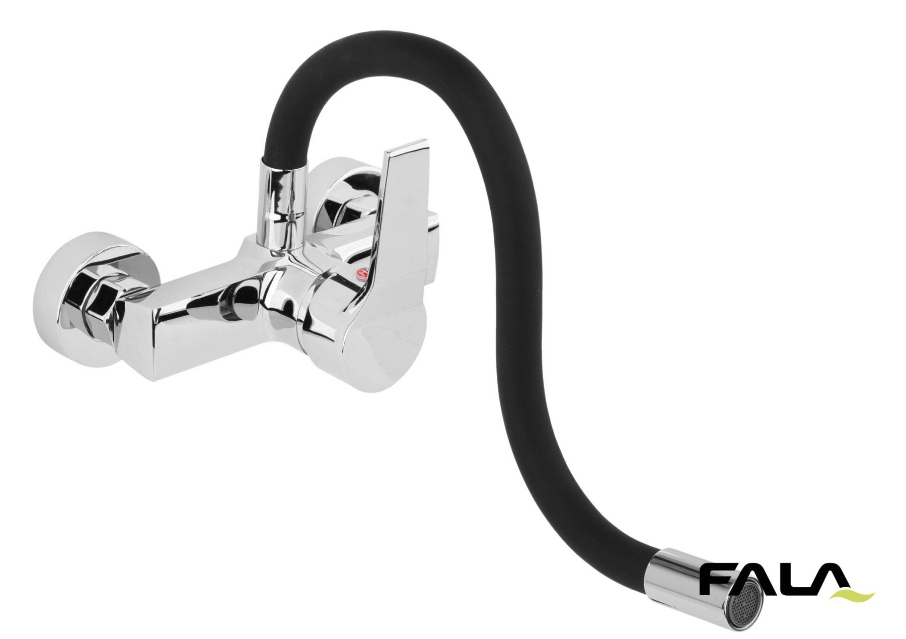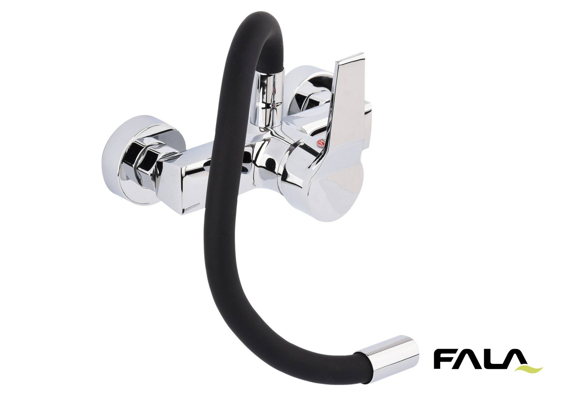 FALA Змішувач води настінний "FLEXIBLE" з гнучкою чорною лійкою | 75670