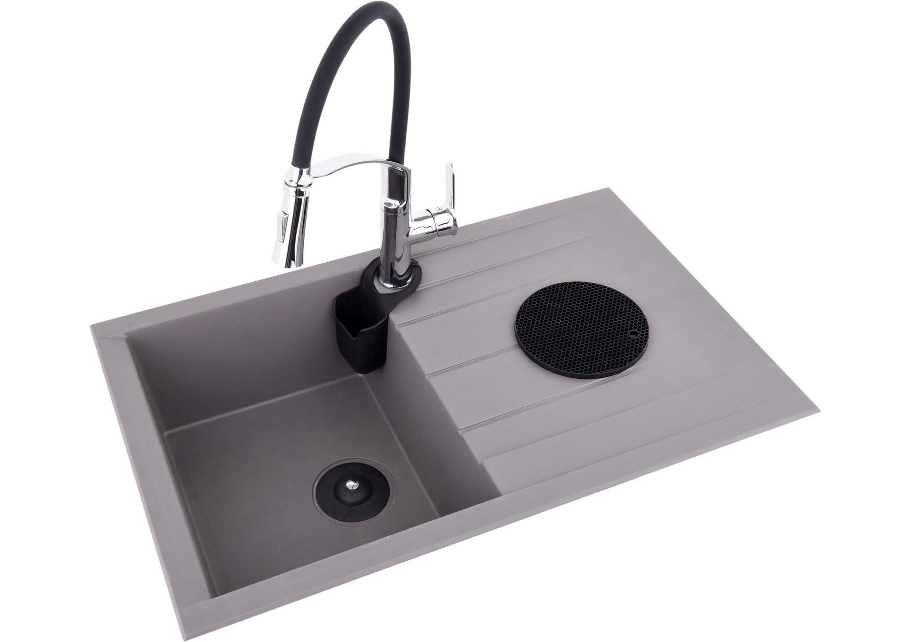 - гнучкий і поворотний на 360 градусів вилив довжиною 60 см дозволяє регулювати кут, висоту і діапазон струменя води відповідно до поточних потреб