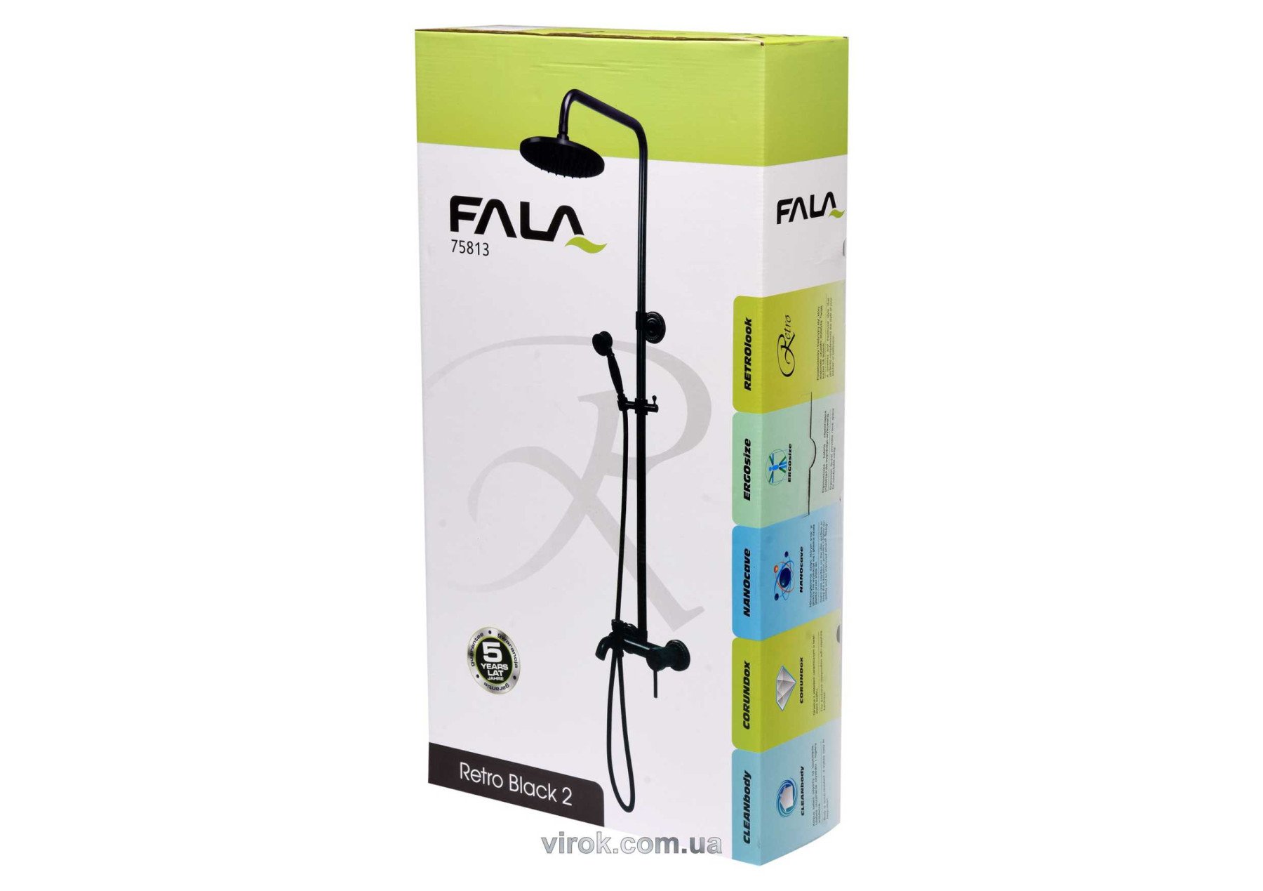FALA Душовий комплект з кульовим регулятором RETRO BLACK 2 : 2 функції, регульована висота 95-130 см | 75813