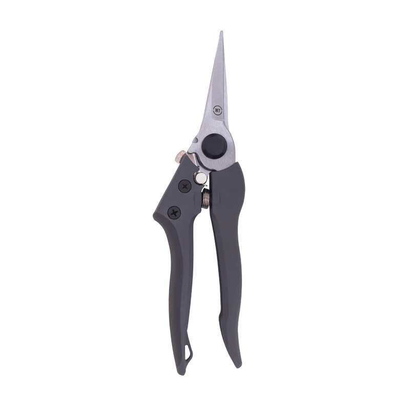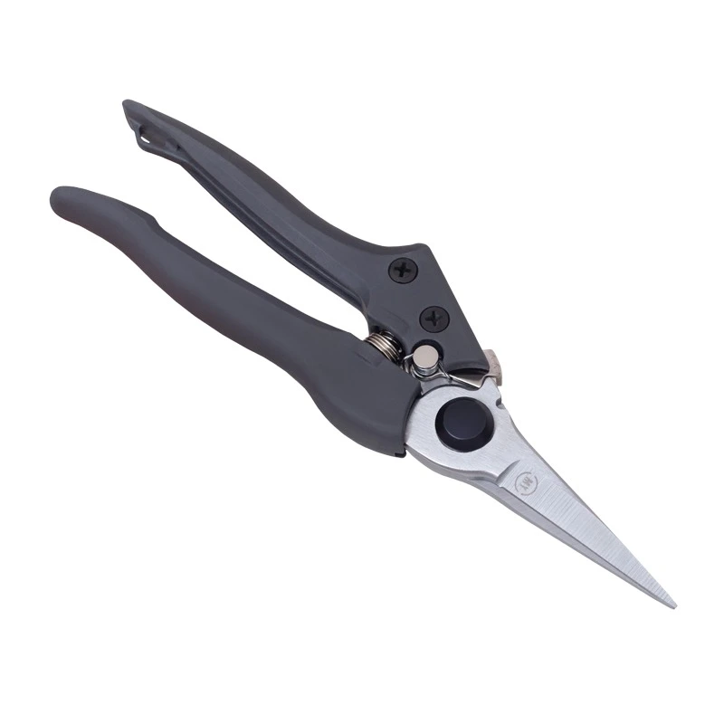Ножиці для квітів Flo 210мм. Спеціальні ножиці з вузькими лезами, що дозволяє ефективно використовувати їх при обрізці не тільки квітів, але й молодих пагонів винограду, малини та інших кущових культур. Леза виготовлені з високоякісної японської сталі SK5. Максимальний діаметр різу 10мм.