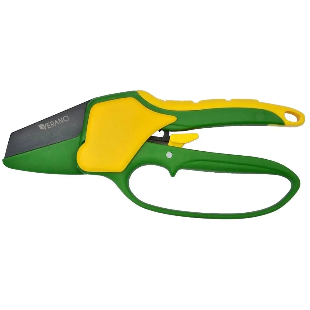 Универсальный секатор длиной 205 мм применяется для толстой живой и сухой древесины. Верхнее режущее лезвие из высокоуглеродистой стали SK5 с PTFE покрытием (против налипания). Корпус из прочного нейлона и фибергласа. Рукоятка имеет специальную выемку для указательного пальца и закрытую форму для защиты руки. Безопасный замок-фиксатор. Отверстие для ремешка. Инструмент могут использовать и правши, и левши. Храповый механизм реза действует по принципу домкрата, значительно увеличивает режущую способность и уменьшает усилия для реза, что важно при удалении толстых ветвей. Храповый механизм не используется для резки молодых ветвей, так как при работе с молодой порослью механизм перегружает кисть руки (секатор может использоваться без задействования храпового механизма для резки тонких ветвей за 1 раз).