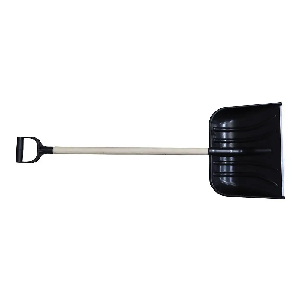 Лопата тротуарна снігоприбиральна пластмасова з дерев'яним держаком. Розмір ковша - 370х480 мм, глибина ковша - 50 мм. Ковш виготовлений з міцного пластику, глибокий, вміщує велику кількість снігу. Робоча кромка підсилена додатковою накладкою. Вона виготовлена з алюмінієвого профілю, і захищає ковш від пошкоджень при роботі з заледенілими доріжками. Товстий держак завдовжки 1 м, діаметром 38 мм. Велика D-подібна пластикова ручка. Її розмір дозволяє працювати навіть в зимовій рукавичці. Лопата універсальна, може використовуватися для збирання зернових на елеваторах і токах, а також прибирання сміття в літній період.