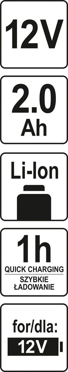 YATO Акумулятор Li-Ion : 12 В, 2 Агод, тривалість заряджання- 1 год