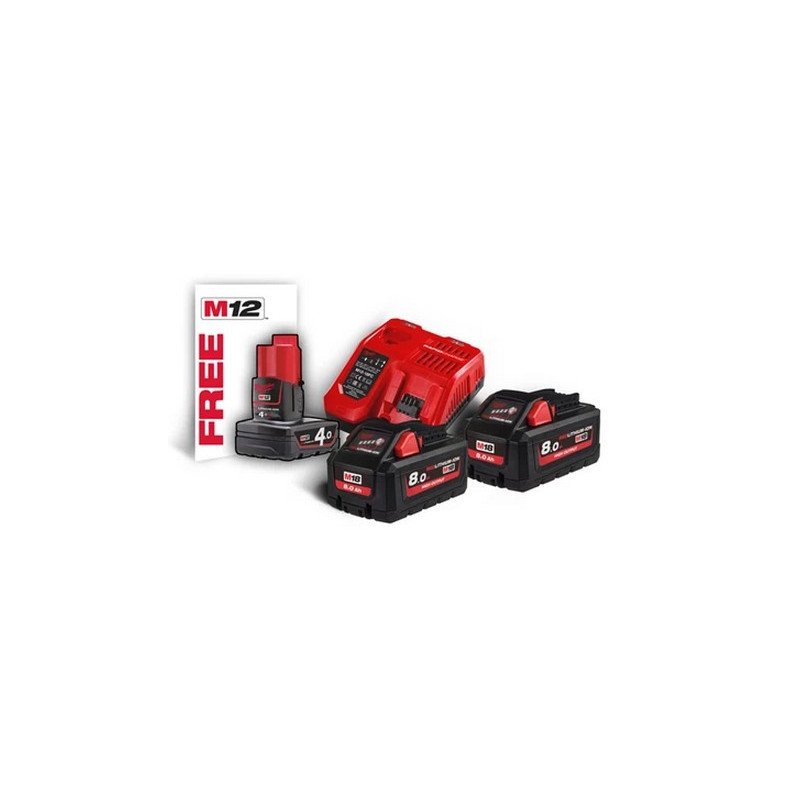MILWAUKEE Енергокомплект , M18 HNRG-802 (+заряд.пристрій, 2 акум. M18 HB8(8Aг), 1акум. M12 B4(4Аг) | 4933471073