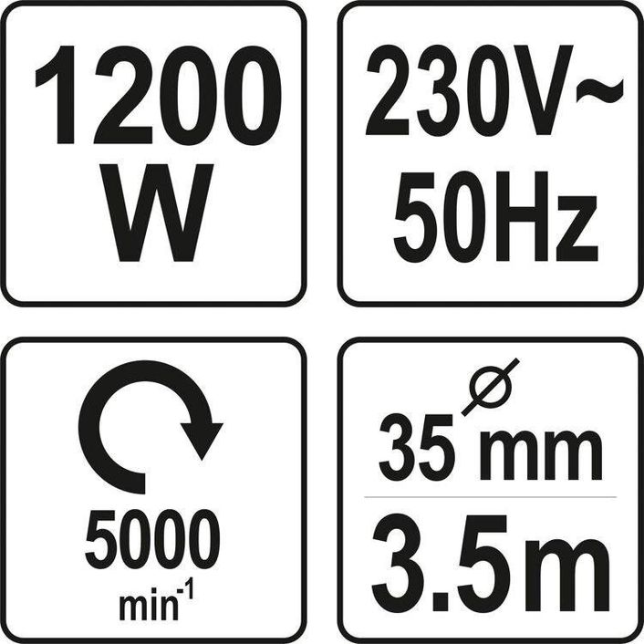YATO Вібратор для укладання бетону мережевий : 1200 Вт, з булавою l= 3 м, Ø= 35 мм