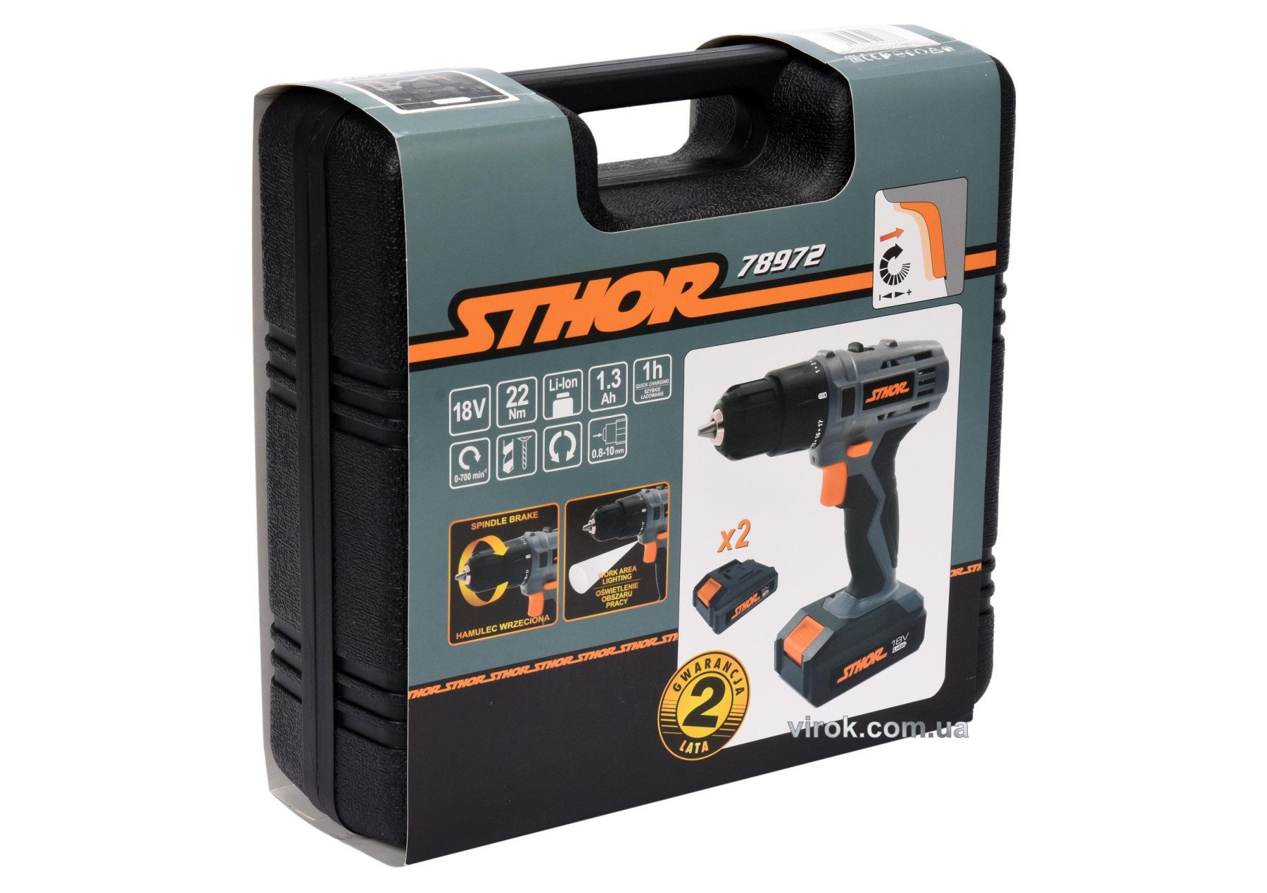 STHOR Шуруповерт акумуляторний : 18V Li-Ion. 2 акум. 1,3 АхГод, КМ- 22 Nm, патрон Ø≤10 мм | 78972