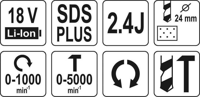 YATO Перфоратор акумуляторний SDS+ : Li-Ion 18В,J=2.4 Дж,Ø≤24 мм(бет), 3 реж(БЕЗ АКУМУЛЯТОРА) заряд.