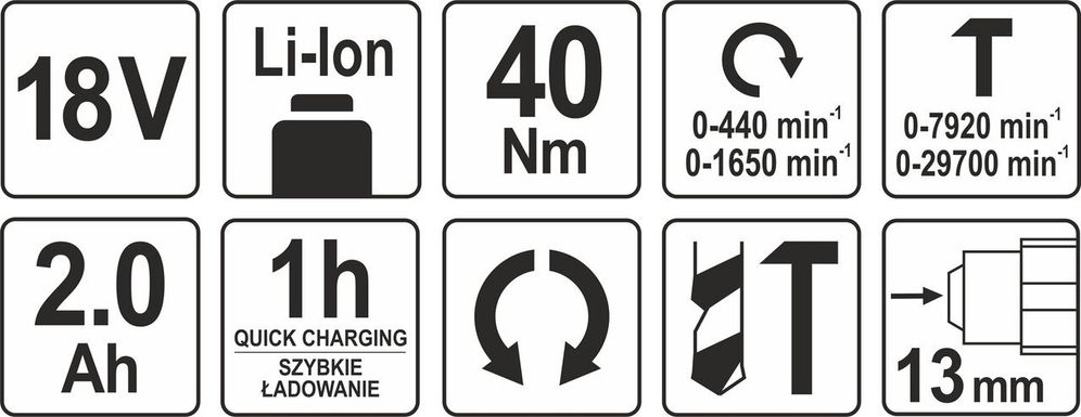 Технічні характеристики Акумуляторного дриля-шуруповерта YATO YT-82786