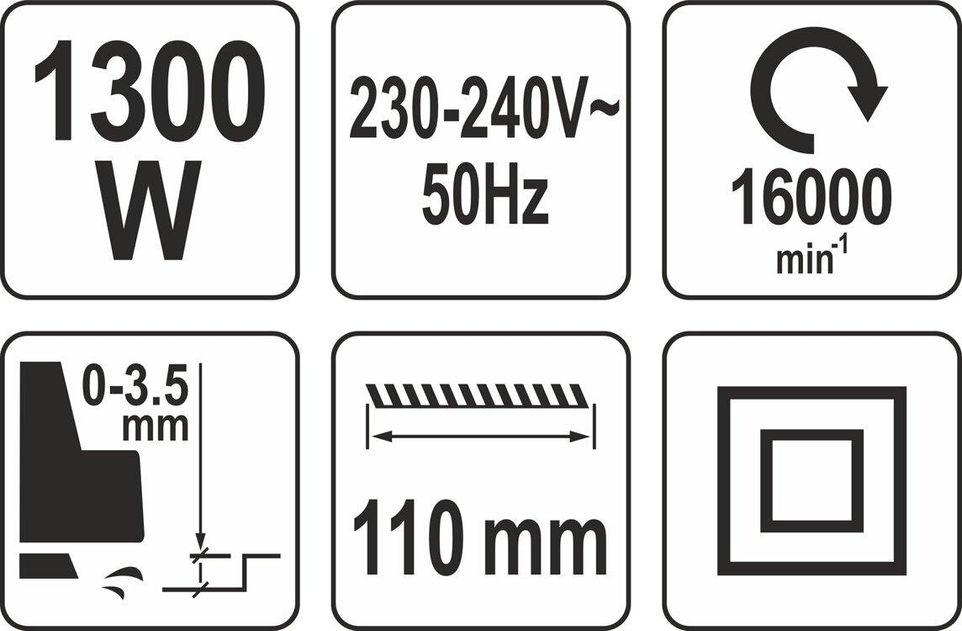 YATO Рубанок електромережевий : P= 1300 Вт, платформа b= 110 мм, глиб. струг.- 0-3.5 мм