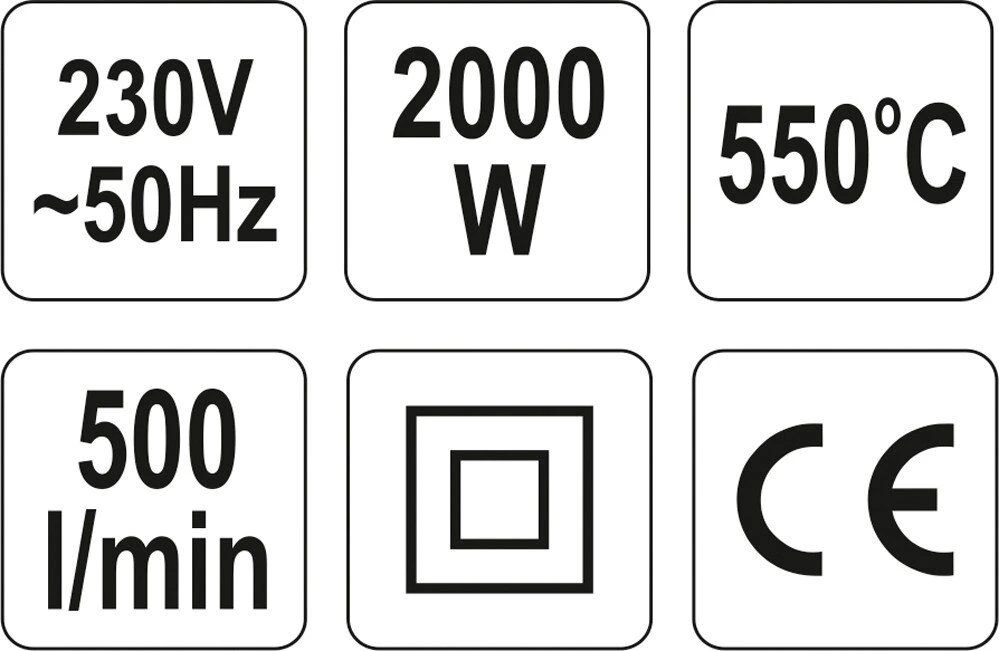 YATO Фен технічний мережевий : P= 2000 Вт 0~550°C, t° режими: 350°С/ 500°С [10]