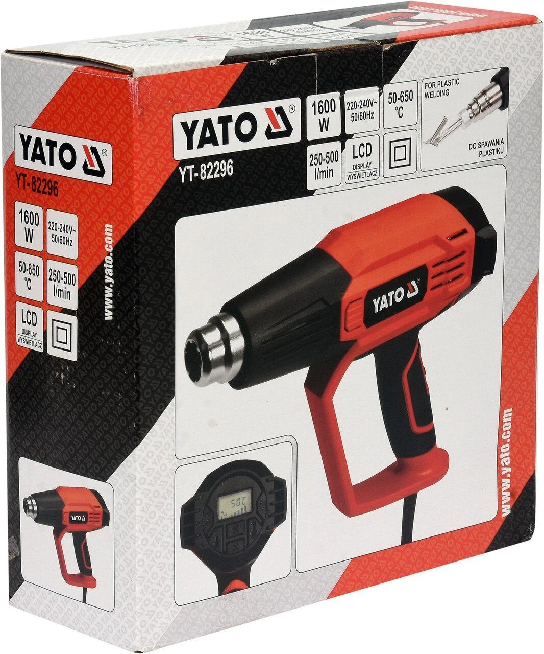 YATO Фен технічний мережевий : 1.6 кВт, 50-650°C, 250-500л/хв, 2 режими, регулятор тем-ри +5 насадок