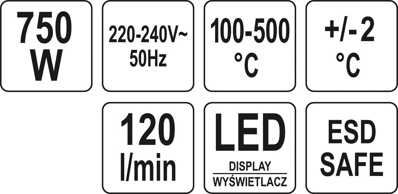 Паяльная станция YT-82457 изготовлена по технологии, защищающей от электростатического разряда, что гарантирует отсутствие накопления избыточного электростатического заряда на корпусе. Благодаря этому мы ограничиваем риск повреждения, например, чувствительных цепей SMD. Нагревается до рабочей температуры 350C примерно за 6 секунд.
