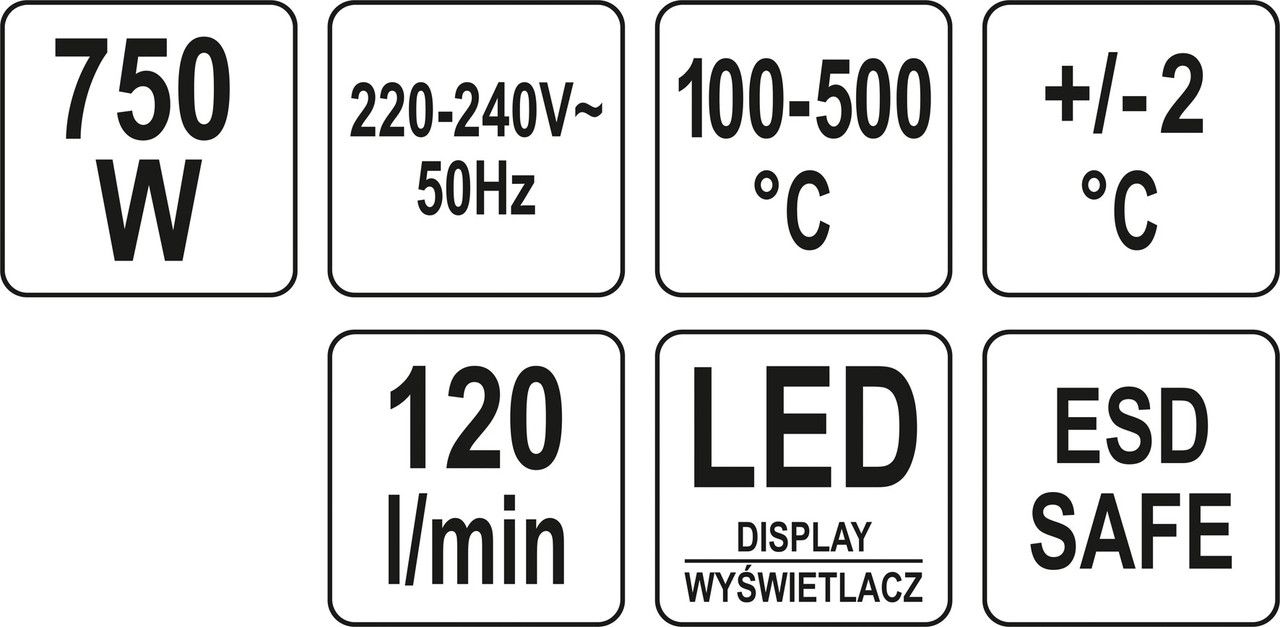 Термоповітряна станція HOT-AIR YT-82457 з цифровим світлодіодним дисплеєм, контролем температури та функціями, які підвищують комфорт роботи та полегшують правильне паяння. Станція оснащена рукояткою з обдувом, що приводиться в дію безщітковим вентилятором.