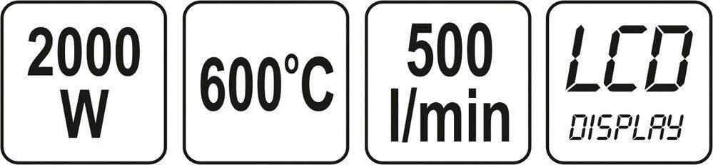 Фен електричний з регулятором температури 2 кВт, макс. t= 600°С з прилаштунками
