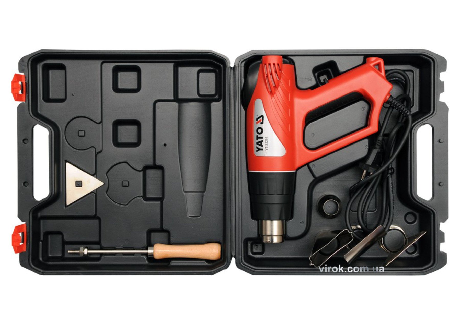 Технічний фен YATO YT-82293 – це електроінструмент II класу ізоляції, призначений для обдування поверхонь гарячим повітрям при високій температурі. Це полегшує усування старих масляних фарб та лакувальних оболонок з меблів, панелей, підлог, дверей та вікон. Має LCD-екран, що дозволяє встановити необхідну температуру з точним регулюванням. Є система управління нагрівом та система контролю. В комплекті поставляється пластиковий кейс для зручного транспортування та зберігання.