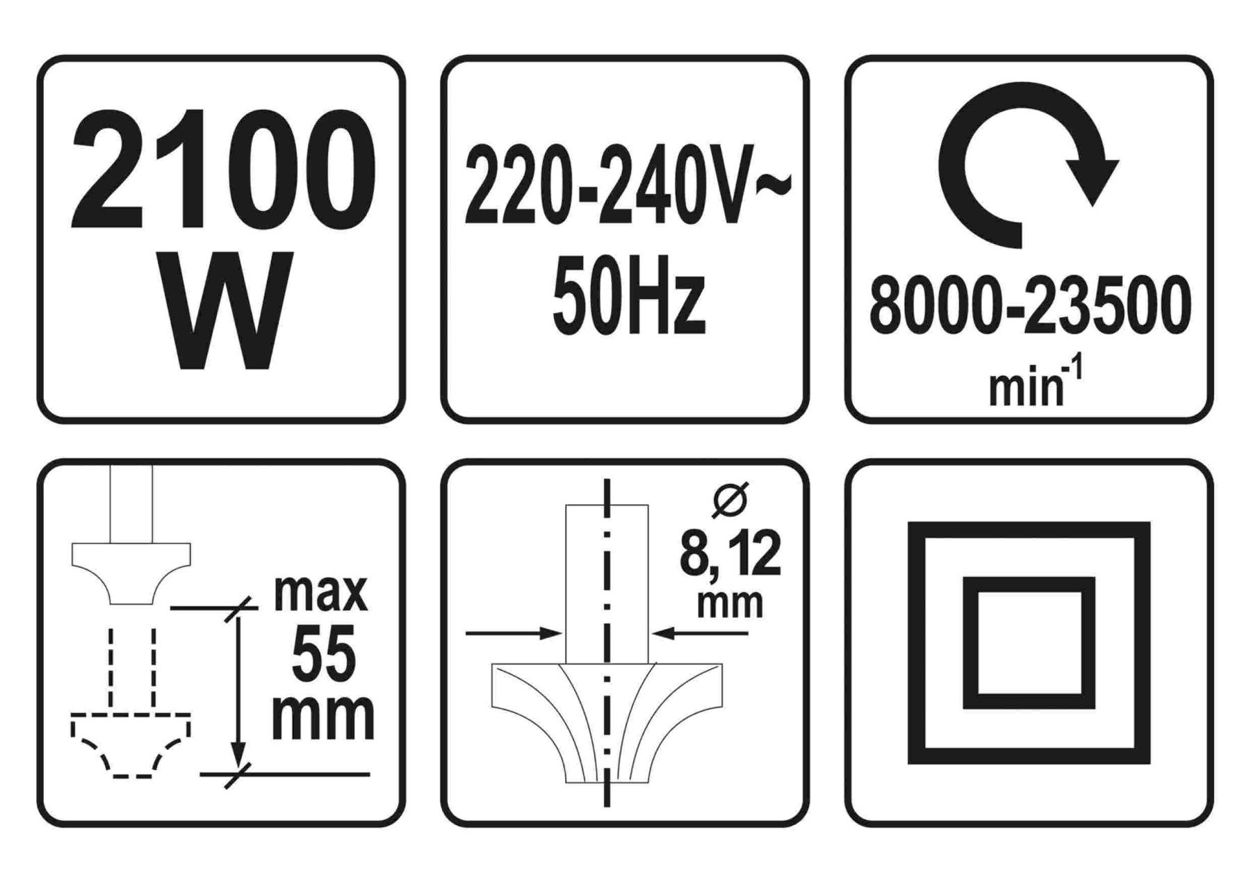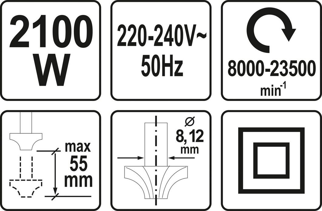 YATO Фрезер ручний мережевий : 2100 Вт, цанга Ø= 8, 12 мм, хід- 55 мм