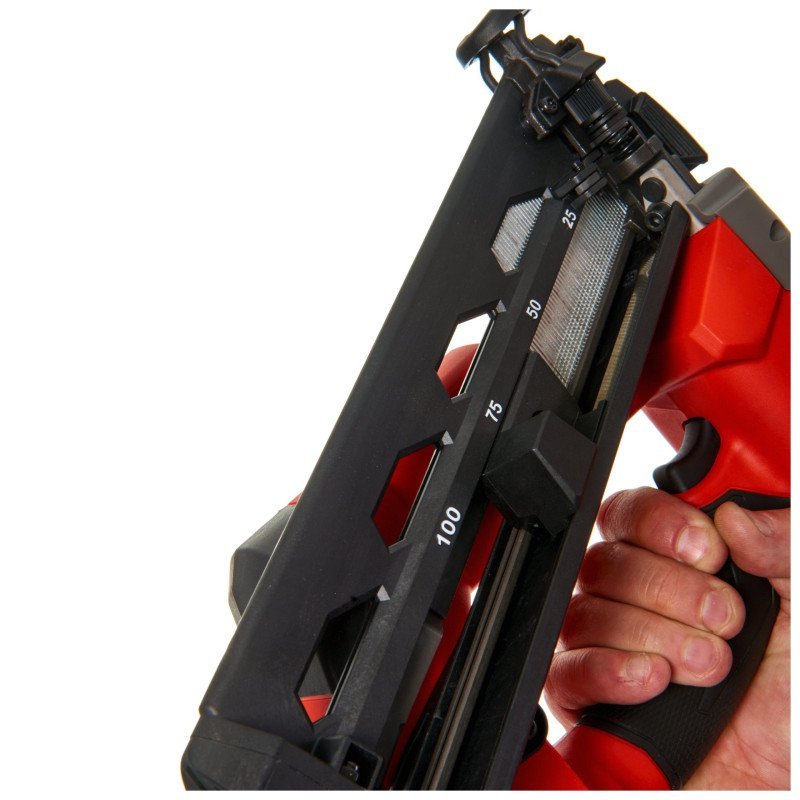 Быстрая и удобная настройка глубины забивания без ключа обеспечивает необходимую глубину посадки гвоздей