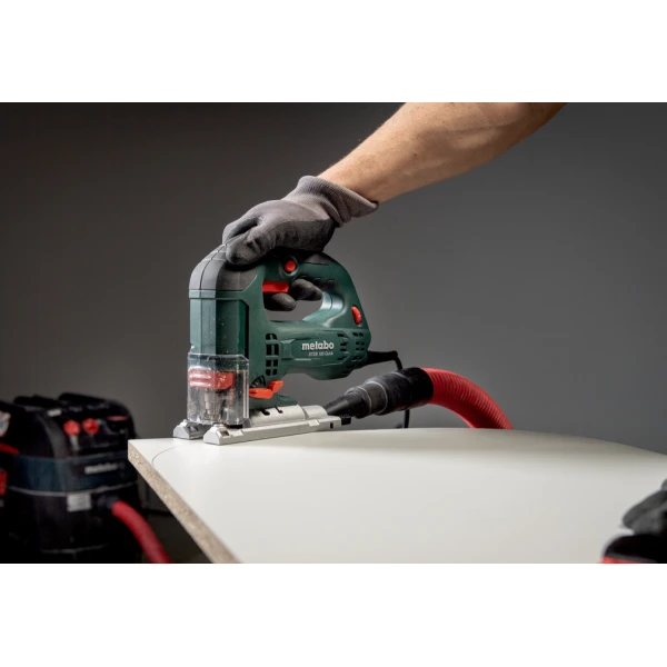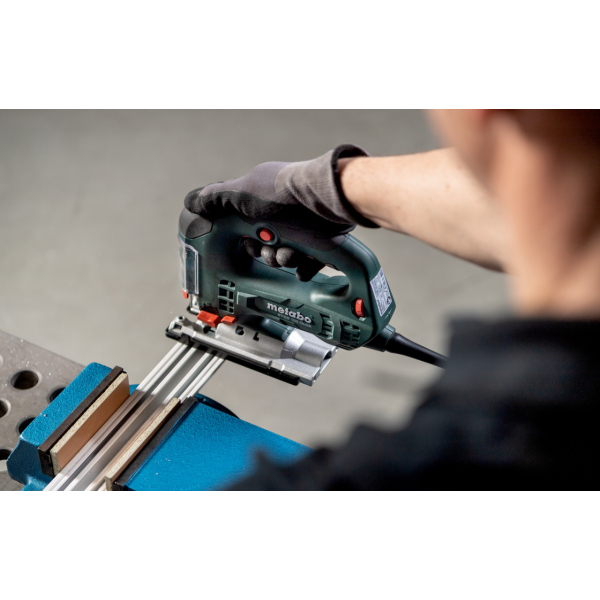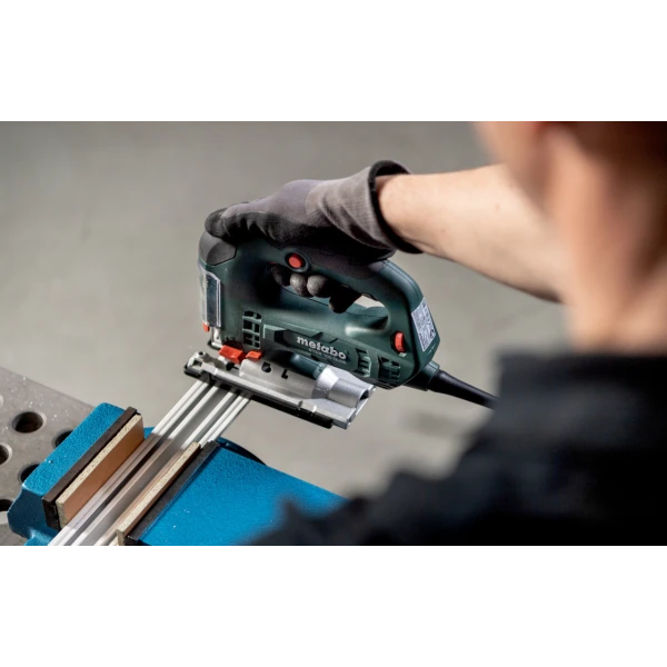 - Вага 2.1 кг Підходить для деревини, кольорових та чорних металів Додатково функція здування тирси з робочої зони, електроніка Vario-Constamatic (VC) для регулювання кількості обертів, Metabo Quick для заміни пиляльного полотна без інструментів, світлодіодна підсвітка робочої зони, видування стружки з зони розпилу, можливість підключення універсального пилососа Довжина кабелю 4 м Напруга живлення 220 / 230 В Потужність номінальна споживана 710 Вт / віддавана 470 Вт Комплектація всмоктувальний патрубок, захисне скло, захисна пластина захисту від сколів, гарантійний талон, інструкція, упаковка Руків'я скоба з нековзкою накладкою Softgrip Кількість коливань / ходів 1000-3100 об/хв Амплітуда коливань / ходів 22 мм Кут нахилу / повороту - 45 / + 45 ° Тип живлення мережевий Ступені маятникового ходу 4 Глибина пропилу (дерево, пластик) 100 мм Глибина пропилу (кольорові метали) 25 мм Глибина пропилу (чорні метали) 10 мм -