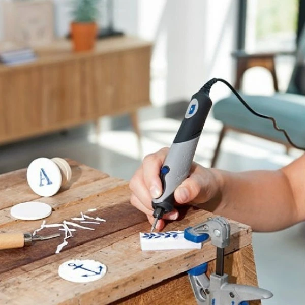 - Вага 200 г Додатково є регулятор обертів Потужність 9 Вт Комплектація 15 насадок Швидкість обертання валу 5000 - 22000 об/хв Цанговий патрон 3.2 мм -