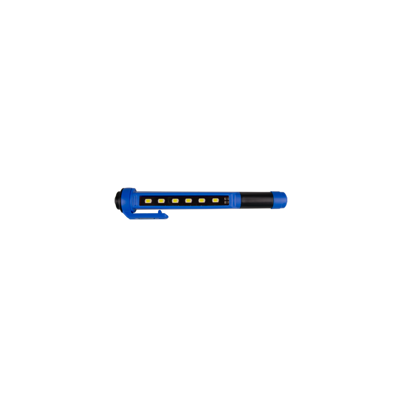 Ліхтарик виготовлений у вигляді ручки, кріплення – кліпса+магніт. Шість світлодіодних елементів вмонтовані вздовж корпусу ліхтарика. Кліпса-магніт може повертатися щодо корпусу ліхтарика на 360 градусів, таким чином, закріпивши ліхтарик у себе на одязі, або встановивши за допомогою магніту на металевій поверхні, ви можете направити світловий потік ліхтарика в потрібну сторону. Корпус ліхтарика виготовлений з міцного АБС-пластику, що надає йому такі характеристики як стійкість до ударів, вологостійкість, масло- і бензостійкість, кислотостійкість. Характеристики Яскравість: 135 люмен (lm) Розміри: 165 x 25 x 30 мм Вага: 58 гр Живлення: AAAx 3