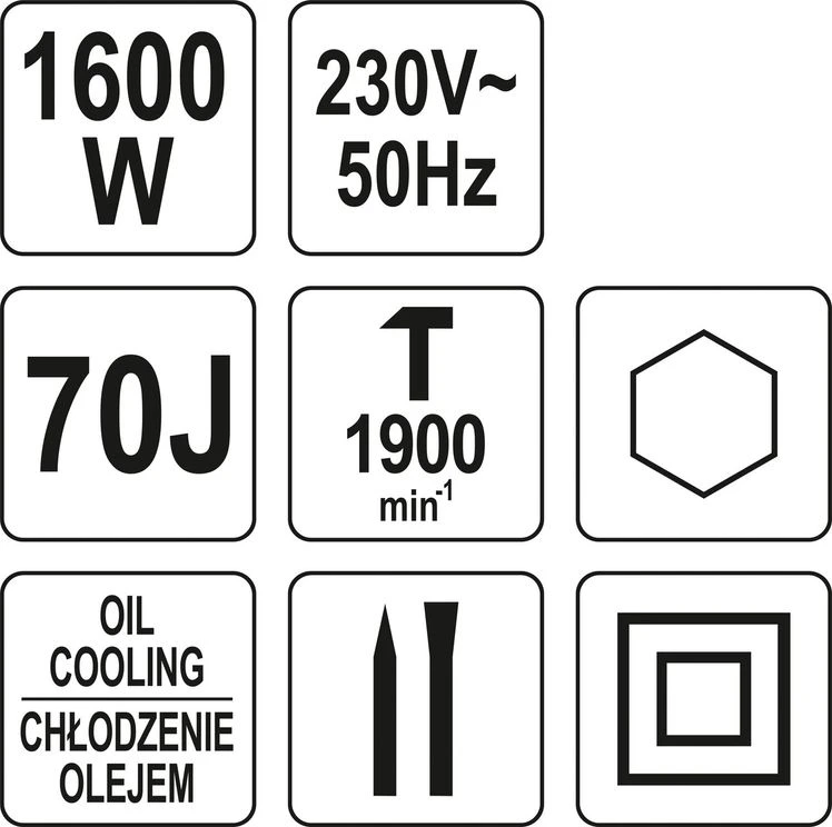 Самый мощный (70 Дж) отбойный молоток с масляным охлаждением (5W30) в своем классе. Предназначен для сноса железобетона, например ленточных фундаментов, плит, армированных сталью A-III и A-0, перекрытия перекрытий или уплотнения грунта с помощью соответствующего наконечника (YT-47385 приобретается отдельно).