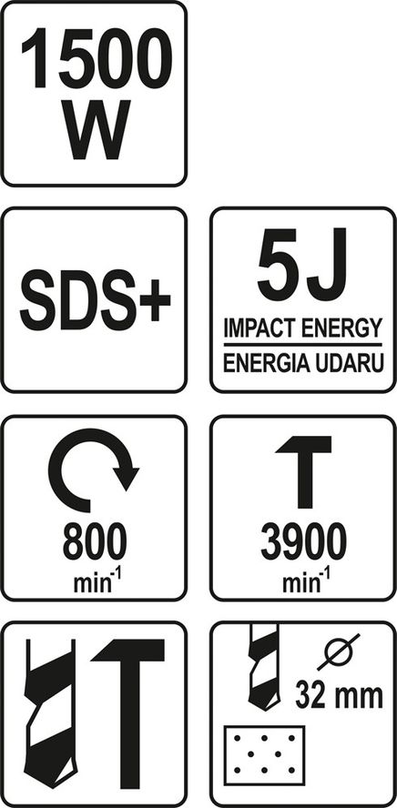 YATO Перфоратор мережевий SDS+ : P= 1500 Вт, J = 5Дж. частота -3900 уд./хв, Ø≤ 32 мм (бетон)
