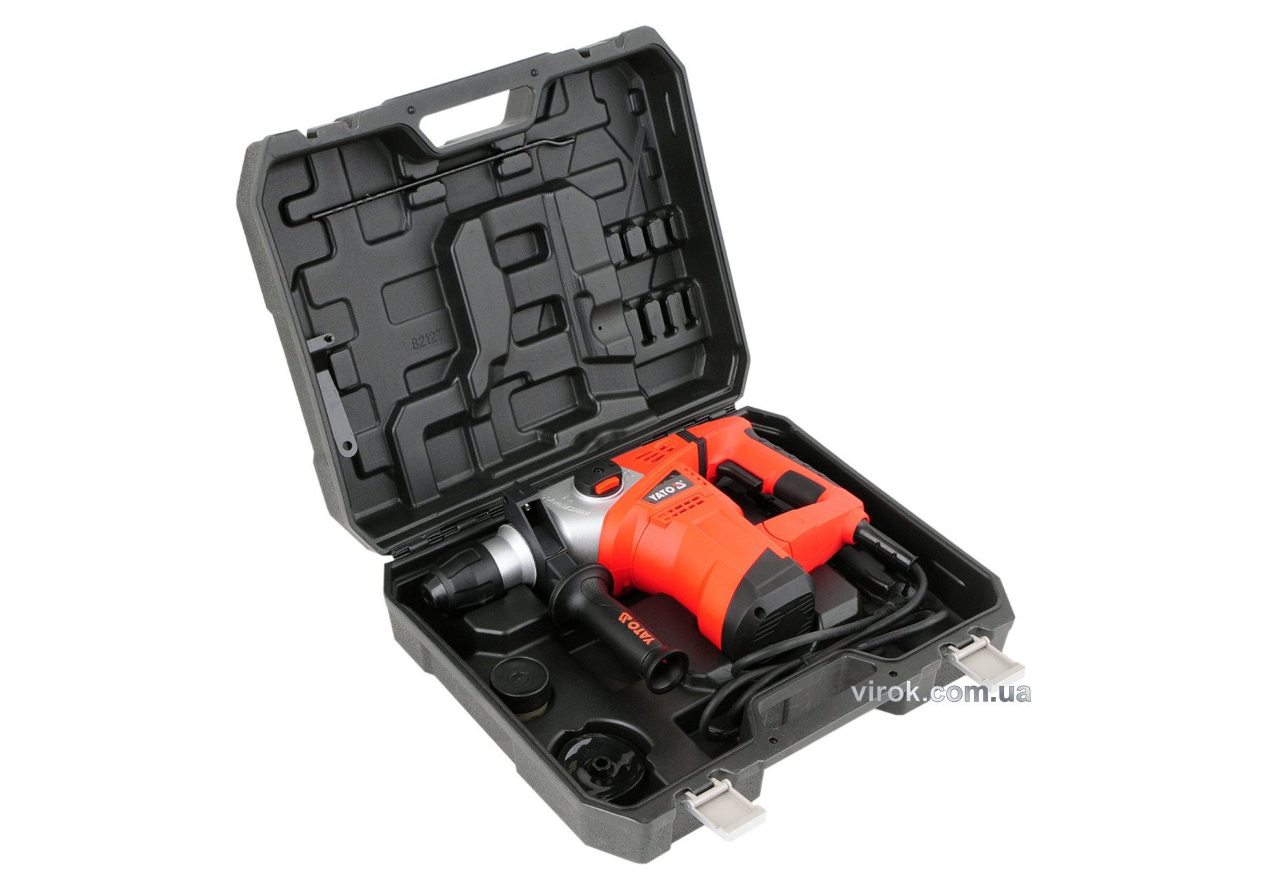 Перфоратор YATO YT-82127 – інструмент II класу ізоляції, призначений для буріння отворів та довбання в бетоні, природному та штучному камені, мармурі тощо з використанням змінних робочих інструментів з хвостовиком SDS Plus.