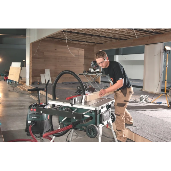 - Вага 28.5 кг Додатково підключення пилососу, захист від повторного пуску, плавний пуск, гальмо двигуна, захист двигуна від перевантаження, колеса для транспортування, складна конструкція Довжина кабелю 3 м Потужність споживана 1500 Вт (віддавана 900 Вт) Габаритні розміри 670x730x355 мм Комплектація пиляльний диск 30 зубів, паралельний упор, кутовий упор, подовження столу, пристрій видалення тирси, штовхач заготовки, опорна рама, гумові шини, розширення столу (ліворуч), розширення столу (праворуч), інструкція, гарантійний талон, упаковка Швидкість обертання валу 5000 об/хв Габарити платформи мін/макс: 585/780 x 630/930 мм Діаметр диска 216 мм Глибина пропилу (45°) 43 мм Глибина пропилу (90°) 63 мм Швидкість різу 57 м/с Тип живлення від мережі 220 В Кут встановлення диска від -1.5 до 46.5° Робоча висота столу 850/355 мм Ширина різу на паралельному упорі 425 мм -