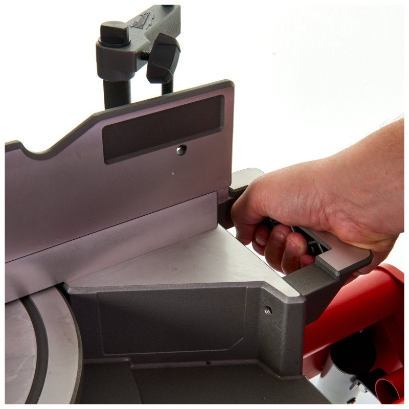 Зручна стопорна ручка, розташована у верхній частині пилки, дозволяє виконувати кутовий різ 48° з нахилом праворуч і ліворуч, а також фіксувати пилку в 9 різних положеннях.