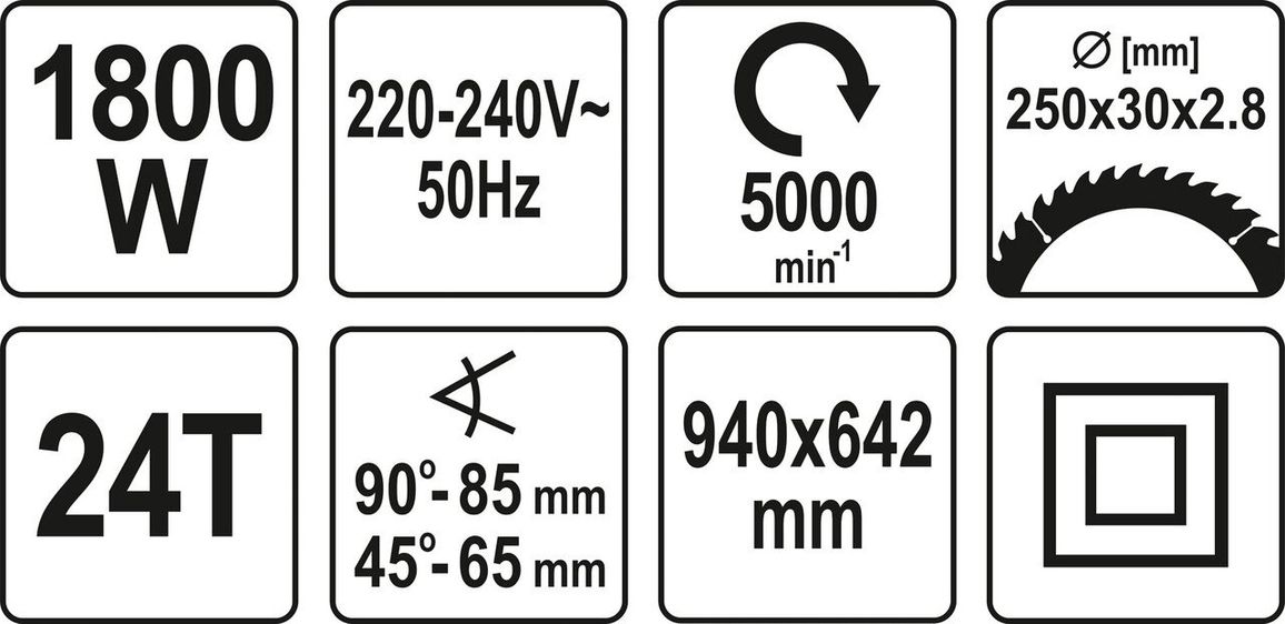 YATO Пила циркулярна мережева : 1800 Вт, диск Ø= 254/30 мм, 4800 об/хв, нахил 0-45°