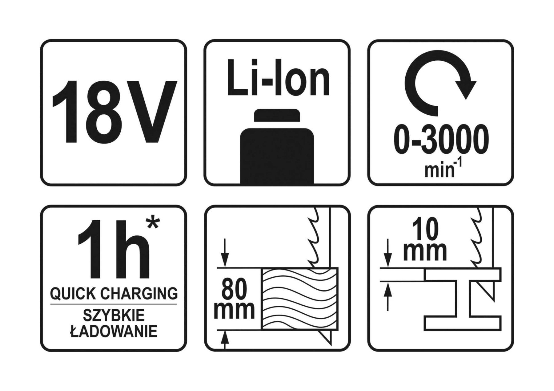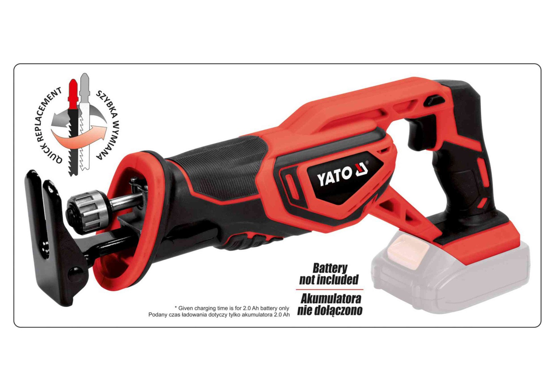 YATO Пила шаблева акумуляторна : Li-Ion 18 В, БЕЗ АКУМУЛЯТОРА
