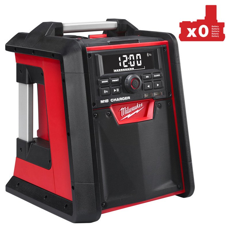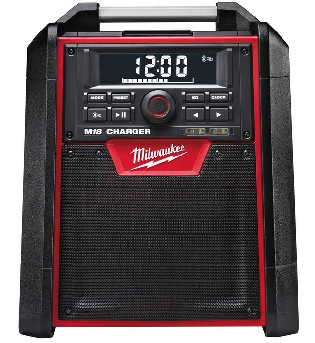Цифровий тюнер AM/FM; динаміки 40Вт; Bluetooth; відкривачка для пляшок; вбудоване з/в для акумуляторів М18; USB; живлення від розетки або М18; шнур; 2-і батареї ААА; вага 7,7; картон