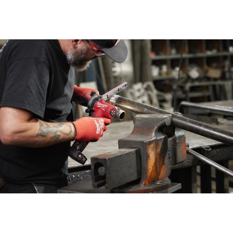 Перша у світі стрічкова шліфувальна машина з живленням від акумулятора 12 В та шириною стрічки 13 мм. Найлегша акумуляторна стрічкова шліфувальна машина на ринку всього 1,1 кг з акумулятором 2 Ач. Він перевершує пневматичних конкурентів, забезпечуючи кращий баланс 2 режими швидкості + курок із регульованою швидкістю - забезпечують максимальний контроль від видалення зварних швів до точної обробки нержавіючої сталі, алюмінію та дерева. Реверсивний режим - дозволяє користувачеві вибрати напрямок руху стрічки по відношенню до напрямку іскор/стружок Робота однією рукою – дозволяє працювати в обмеженому просторі та ідеально підходить для роботи над головою Регулювання головки на 360° без використання інструментів - найкраще поводження в будь-якому робочому середовищі + можливість компактного зберігання Запобіжний гачок спуску подвійної дії з функцією блокування для менш напруженої роботи при більш тривалому використанні. Заміна ременя без інструментів Світлодіод освітлює робочу зону для кращої видимості ДНК нашої платформи FUEL™ перевизначає баланс між акумуляторними технологіями. Безщітковий двигун MILWAUKEE ® POWERSTATE ™, батарея REDLITHIUM ™ та електронний інтелект REDLINK PLUS ™ забезпечують чудову продуктивність, час роботи та надійність. Гнучка система живлення: працює з усіма батареями M12™ MILWAUKEE . Акумулятор 2 Місткість акумулятора (Ач) 4 Зарядний пристрій у комплекті С12 С Напруга (В) 12 Тип акумулятора Li-ion Довжина стрічки (мм) 457 Швидкість без навантаження (про/хв) 0-7,200/-14,500 Швидкість стрічки [М|ММ] 0-560/0-1,105 Ширина стрічки(мм) 13 НАБІР ВКЛЮЧАЄ 2 x M12 B4 Акумуляторні набори, C12 C Зарядний пристрій, Сумка для інструмента