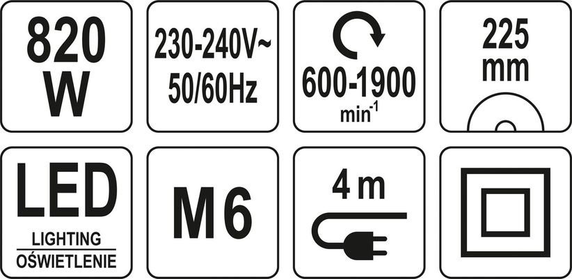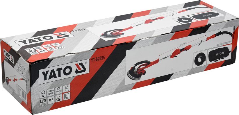 YATO Шліфмашина для стін і стель на штанзі мережева: 820 Вт, диск Ø= 225мм, макс. L= 165см з пиловт.