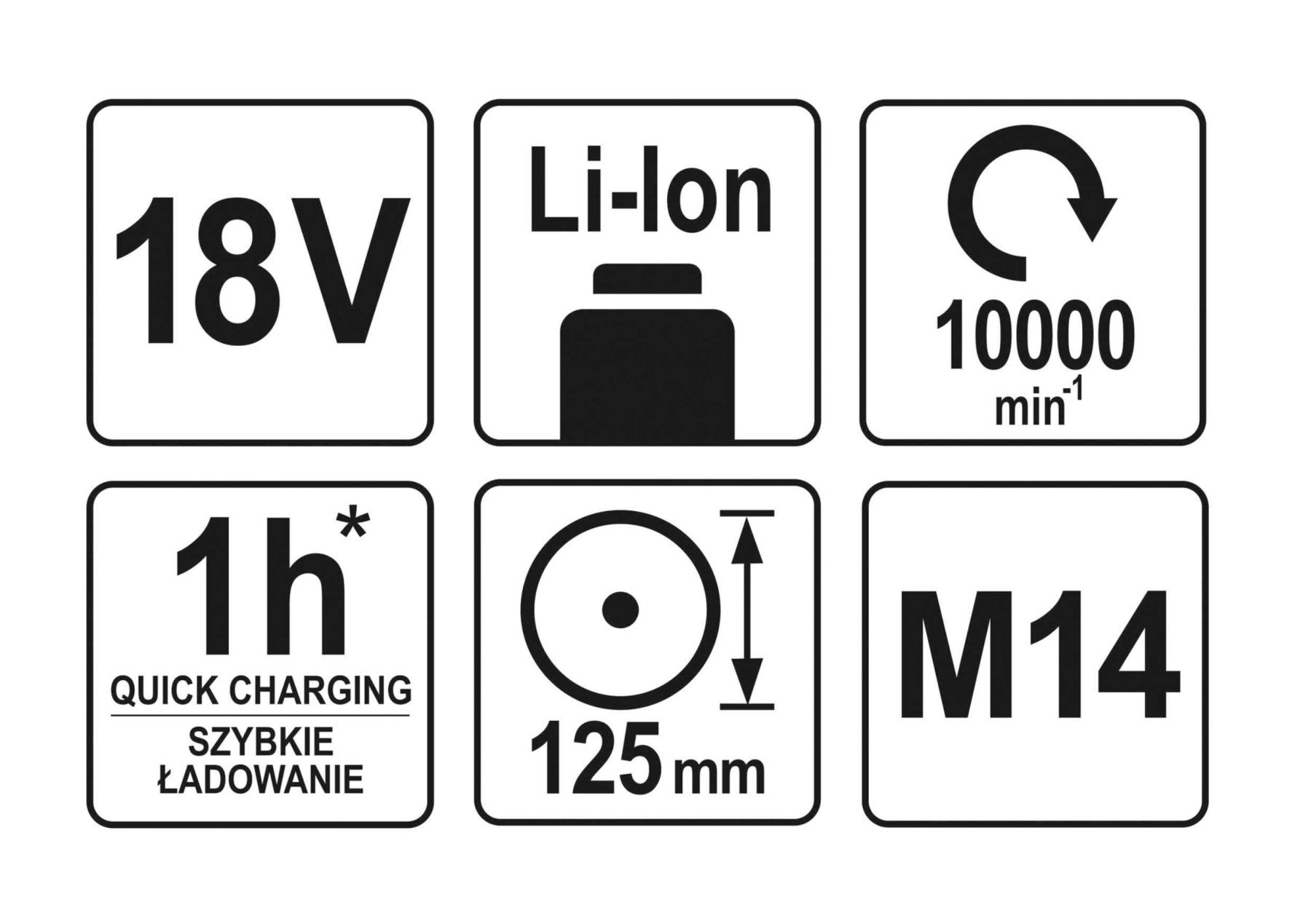YATO Шліфмашина кутова акумуляторна 18 В, для диска Ø=125 мм (БЕЗ АКУМУЛЯТОРА)